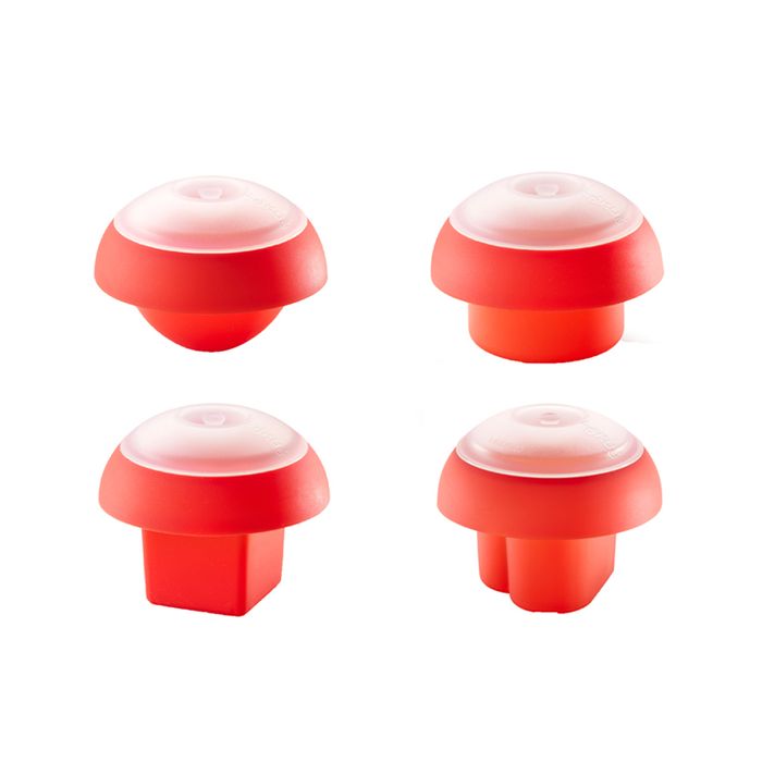 Sold in CDU of 18 assorted shapes, all with transparent body and red lid