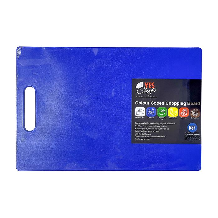 This blue chopping board is designed to meet food safety and hygiene standards, making it ideal for professional and home kitchens. Colour-coded blue for seafood, it ensures proper separation of food types, helping to prevent cross-contamination. Certified for use in professional food service, this board is a dependable choice for any food preparation environment.
