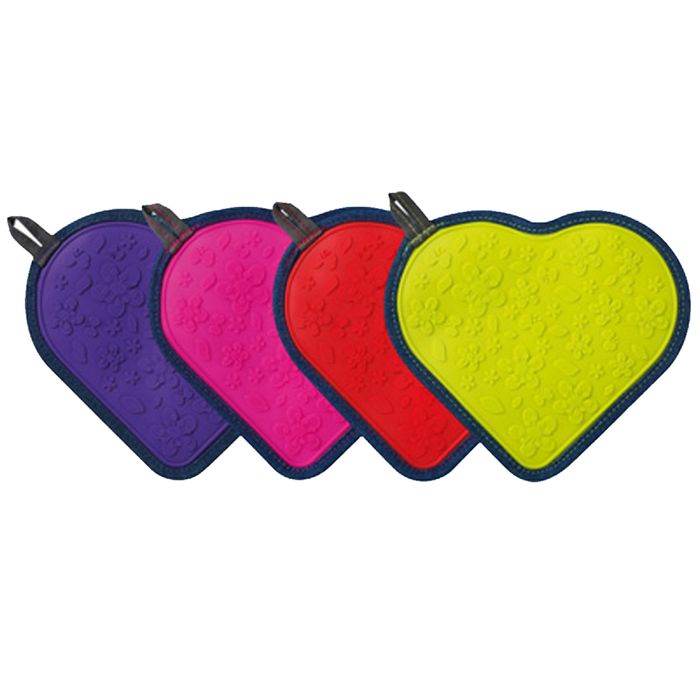 Our multi-purpose Zeal silicone and fabric heart shaped trivet is a great help around the kitchen, doubling up as a hot grab when needed! Use either as a worktop protector from hot trays and pans, or use as a pot holder to protect the hands when moving hot items. The combination of padded fabric and flexible, non-slip silicone means it’s quick and easy to use when taking baking trays straight from the oven.