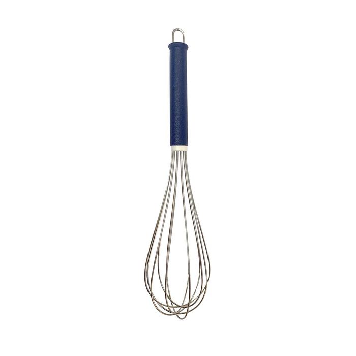 The hanging loop on the handle is a useful detail, for example if you want to store the balloon whisk on a utensils rack. The glass-fibre reinforced blue plastic handle is extremely comfortable and offers a non-slip grip which makes your work much easier. Once your kitchen tasks are complete, the plastic handle balloon whisk is easy to clean, either in the dishwasher or by hand under hot running water with some washing up liquid.
