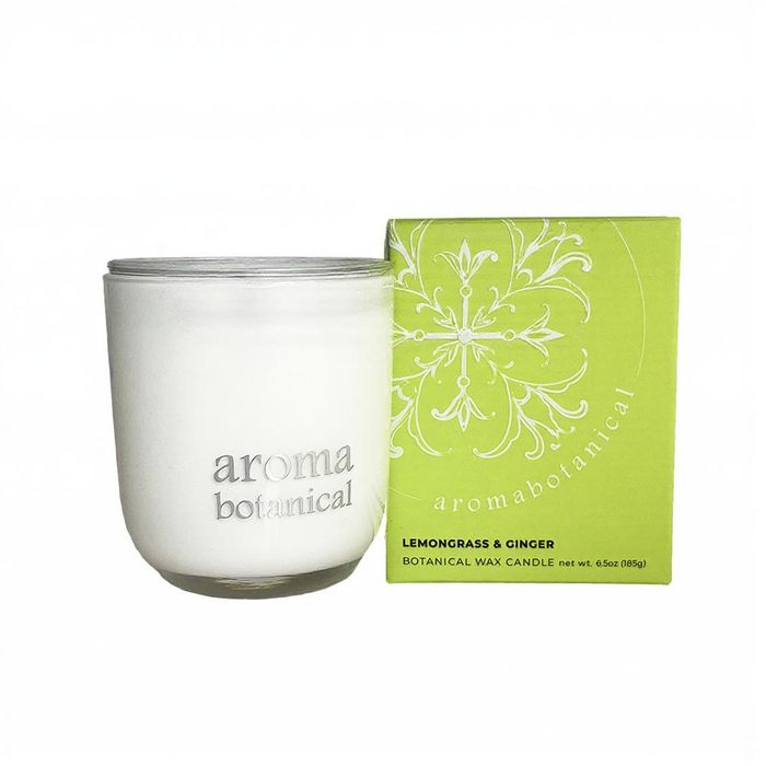 Brighten your home with the crisp, refreshing scent of Lemongrass & Ginger. This 185g natural botanical wax candle is hand-poured into a white glass jar and finished with an embossed chrome-plated lid, making it a stylish addition to your home decor.