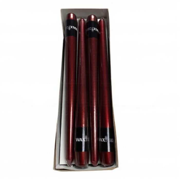Waxglo's metallic taper candles come in a box of 12, ideal for the dinner table or any functon, such as a ruby wedding anniversary. Up to 6 hours burn time per candle.