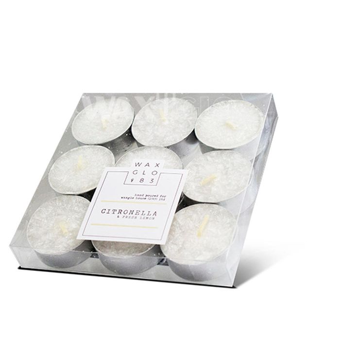 Keep those pesky mosquitos away with our fantastic Citronella and lemon scented tealight candles in a convenient 9pk. Up to 4 hours burn time per tealight. (if burning outside or in a draft the burn time will be reduced)