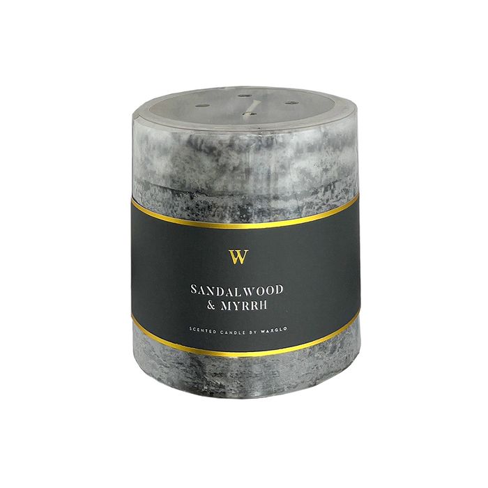 Release the ultimate fragrance in your home with Waxglo's own 'W' Range candles. Top notes of citrus, bergamot, orange, pineapple and aldehyde, body notes of floral, orris,ylang ylang, jasmine, and cyclamen, followed by base notes of vanilla, cedarwood, sandalwood and musk, blended to create the delightfully woody aroma of sandalwood & myrrh. Up to 65 hour burn time
