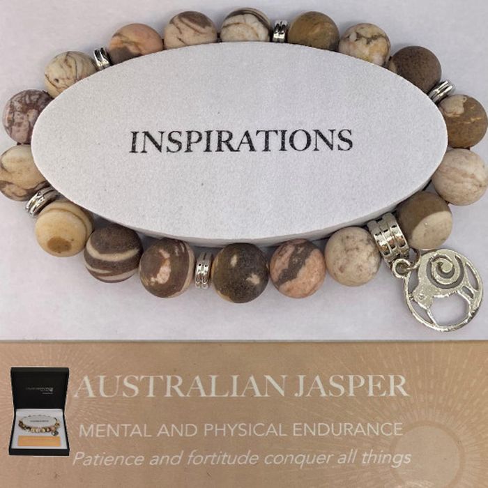 Australian Jasper gives the gift of mental and physical endurance. This special edition bracelet features unpolished matte gemstones which are a unique feature, displaying the natural and raw beauty of the gemstone. Each design has the meaning of the stone and a special “Inspiration” message and comes beautifully presented in quality jewellery box. Our charms and fixings are made from stainless steel and our high quality semi-precious gemstone beads are strung on elastoma. Inspiration – “Patienc