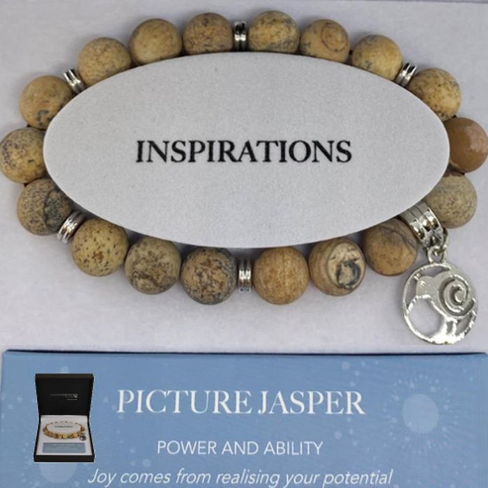 Picture Jasper gives the gift of power and ability. Our inspiration bracelets are a true gift with a meaning. Each design has the meaning of the stone and a special “Inspiration” message and comes beautifully presented in quality jewellery box. Our charms and fixings are made from stainless steel and our high quality semi-precious gemstone beads are strung on elastoma. Inspiration – “Joy comes from realising your potential'.