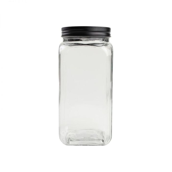 Large Square Glass Jar With Black Lid (1
