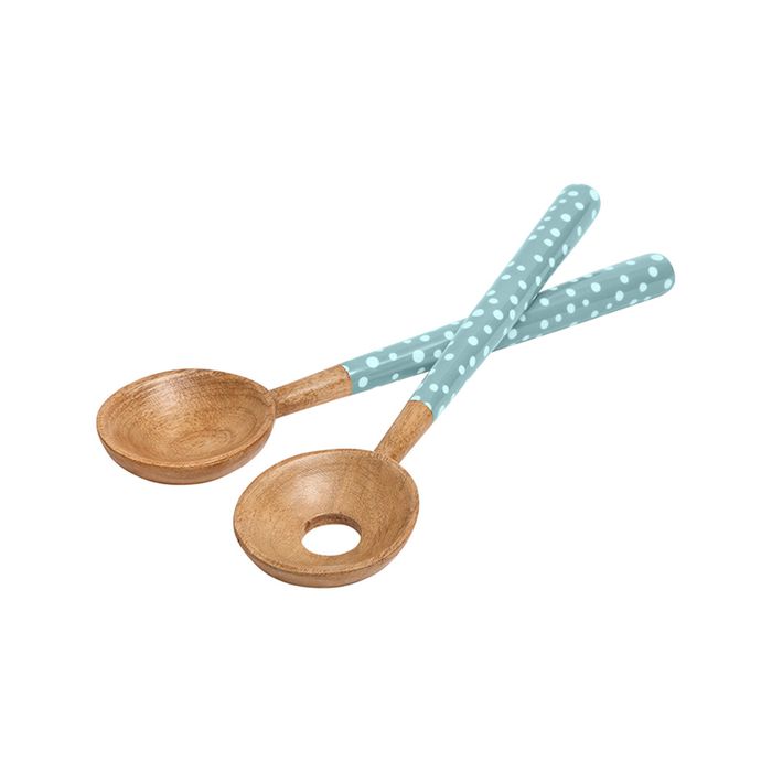 Sintra Mango Wood Spotted Salad Servers - Duck Egg