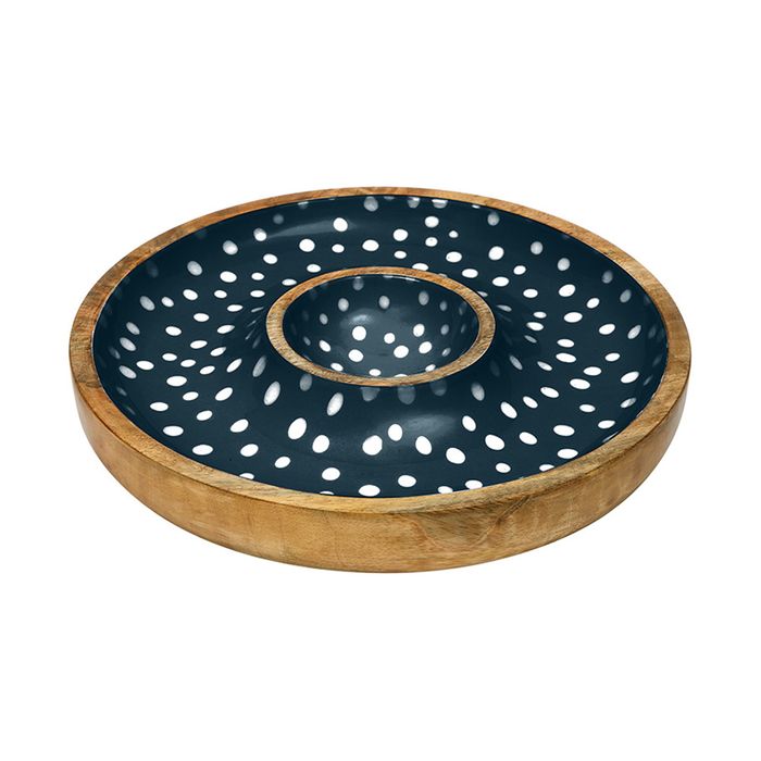 Sintra Mango Wood Spotted Chip And Dip Bowl - Ink Blue