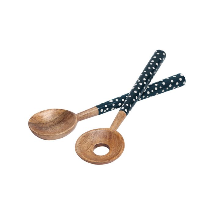 Sintra Mango Wood Spotted Salad Servers - Ink Blue