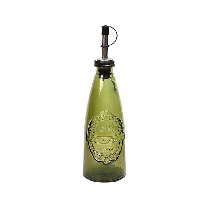 A delightful green oil drizzler bottle made from 100% recycled glass.
