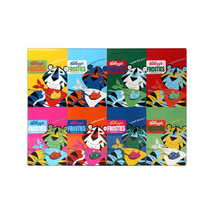 Brighten up any kitchen with this worktop saver in the iconic Vintage Kellogg's Frosties cereal box design. Protect your surfaces and bring some fun to the kitchen with this toughened glass surface protector. Perfect for serving food whilst also doubling as a hot-pot stand for items fresh out of the oven safe up to 120°C. With non- slip feet its perfect for rolling our pastry or preparing food. The Pop Art print features Tony the Tiger in a range of vibrant colours. With a nod to Andy Warhol and the vibrancy of the '60s pop art movement, this colourful worktop saver is guaranteed to brighten up any kitchen!