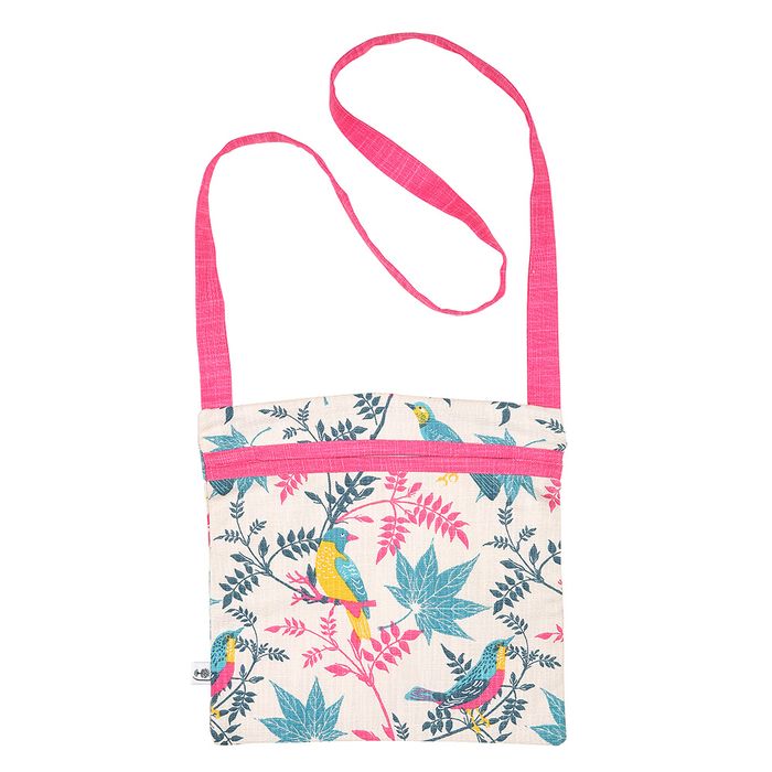Keep all your clothes pegs handy when you're hanging laundry with this Birds peg bag. It has a hanging hook and long shoulder strap to easily store and transport around the home. Made from organic cotton yarn that is kinder to the environment as it uses less water, reduces soil erosion and does not use hazardous manmade pesticides. It also benefits the farmers who can grow additional crops alongside the cotton and maintains the biodiversity of the soil. With a stone background, the heritage inspired design features foliage and birds in teal, pink and yellow. The print was sourced directly from the Royal Horticultural Society (RHS) Lindley Collections which houses the world's finest collection of books and printed materials on gardening and outstanding collections of archives, photography and botanical art. The Royal Horticultural Society. Trade marks of the Royal Horticultural Society (Registered Charity No 222879/SC038262) and used under licence from RHS Enterprises Limited.