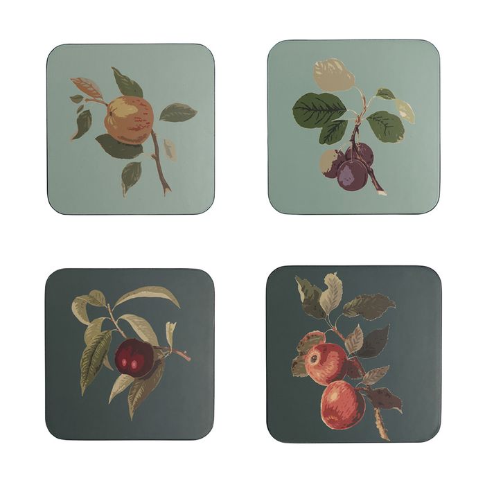 The design features various apple, nectarine and plum varieties on a light and dark green background with green trim. The fruit drawings come from William Hooker (1779-1832) - the greatest fruit illustrator of his day. Sourced directly from the Royal Horticultural Society (RHS) Lindley Collections which houses the world's finest collection of books and printed materials on gardening and outstanding collections of archives, photography and botanical art. Beautifully illustrated fruits printed onto a wipe clean surface with cork base. Perfect for everyday use and heat resistant up to 95°C. The Royal Horticultural Society. Trademarks of the Royal Horticultural Society (Registered Charity No 222879/SC038262) and used under licence from RHS Enterprises Limited.