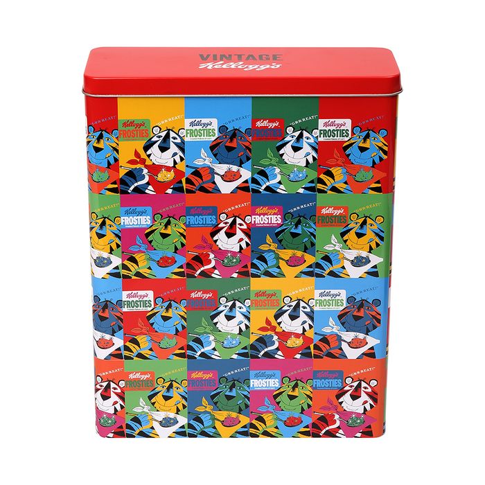 Made from tin plate this storage tin is perfect for keeping things fresh including cereal, biscuits, treats or sweets. Can also be used for craft materials or hold other household items. The Pop Art print features Tony the Tiger in a range of vibrant colours. Inspired by the iconic Frosties cereal box design, Andy Warhol and the vibrancy of the '60s pop art movement, this range is guaranteed to brighten up any kitchen!