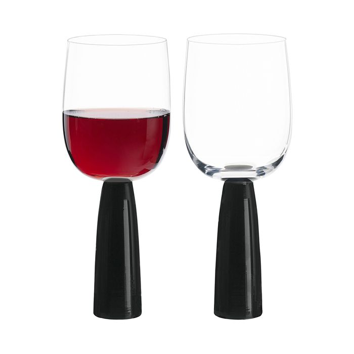 Available in gloss black and frosted white, the gift boxed collection is sold in pairs and comprises of champagne flutes, wine and gin glasses, and completed with footed tumblers.