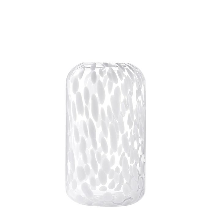 The coloured chips are hand applied, giving each mouth blown vase its own unique pattern.