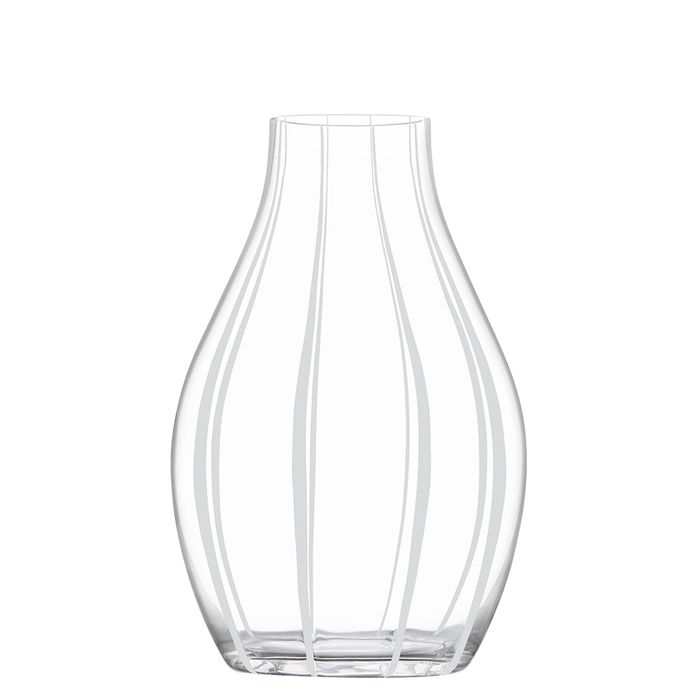 Each 25cm vase is mouth blown and finished by hand, with coloured stripe detailing that enhances its shape rather than overwhelms it.
