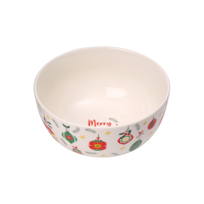 Bring some Christmas cheer to your breakfast table or dessert spread with this Festive Baubles Ceramic Bowl. Decorated with colourful baubles and festive foliage and finished with a subtle Merry & Bright detail inside. It is perfect for enjoying breakfast - puddings - snacks or nibbles all season long! Whether you're curling up with something warm or serving guests at your holiday gathering - this bowl adds a joyful touch to every occasion.