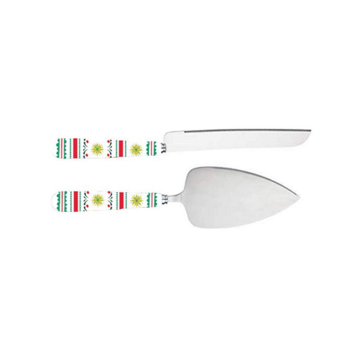 Serve your Christmas bakes in festive style with this charming Festive Cake Server Set. With beautifully patterned ceramic handles in seasonal red - green and gold - this two-piece set includes a serrated knife and a matching server. Perfect for slicing and plating cakes - yule logs - or festive tarts. Whether you're hosting a party or treating the family, this set adds a joyful finishing touch to your Christmas table.