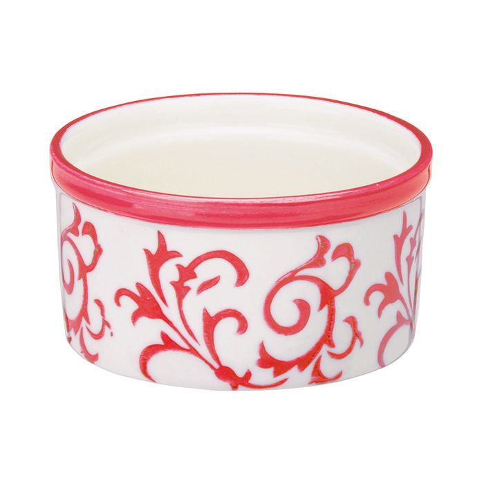 This stunning heritage ramekin features a slightly floral, swirling red decoration, complemented by a continuous band of color along the edge that enhances the hand-decorated pattern. Made from durable stoneware and finished with a high-quality glaze, this ramekin is as easy to clean. Whether you’re whipping up individual soufflés, serving dips, or enjoying snacks, BIA’s design delivers beauty and functionality in one exquisite package.