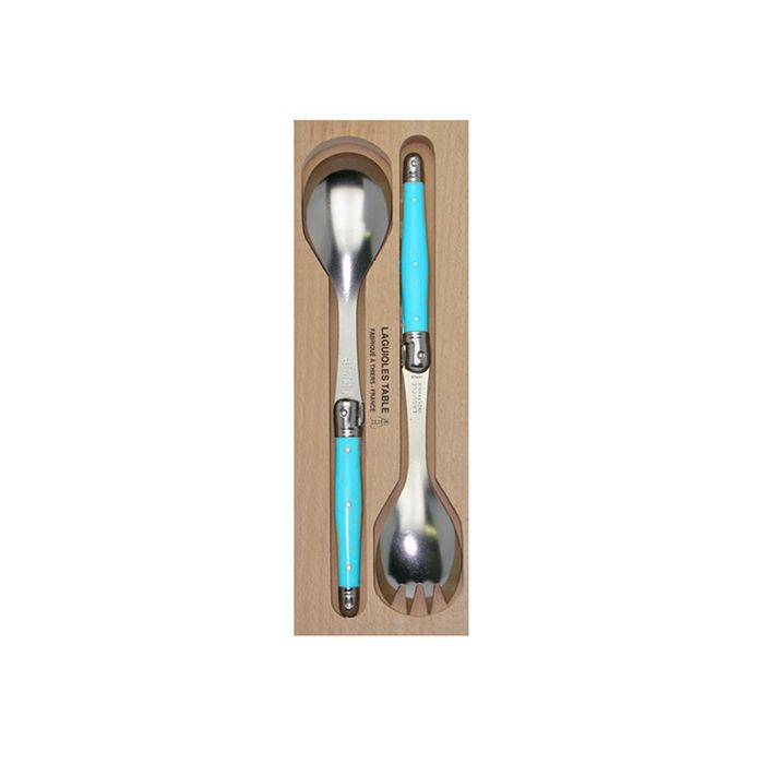 Bring a touch of France to your table with the Verdier Salad Set. This Andre Verdier Salad Set is made of stainless steel blades and resin handles, complete with the iconic Laguiole Bee.
