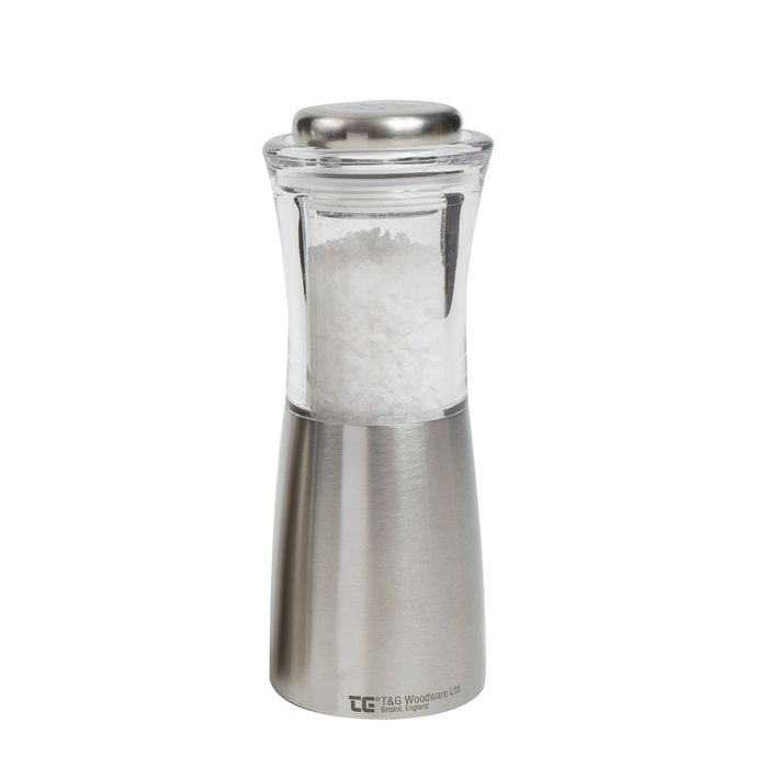 Apollo Salt Mill T&G Woodware The worlds best mills! The CrushGrind® ceramic mechanism allows you to effortlessly grind not only salt and pepper but also using the same grinder, whole dried herbs and spices. T&Gs CrushGrind® mills lead the market in terms of Design, function and quality. Each CrushGrind® mill comes with a lifetime mechanism guarantee. Dimensions