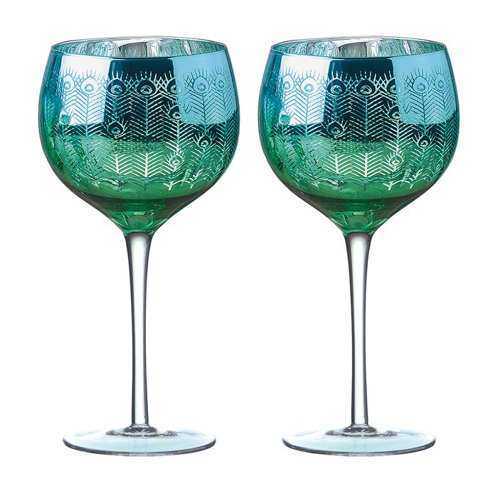 Artland Peacock Balloon Gin Glass Set (Set of 2) – Exotic Elegance for Gin Lovers